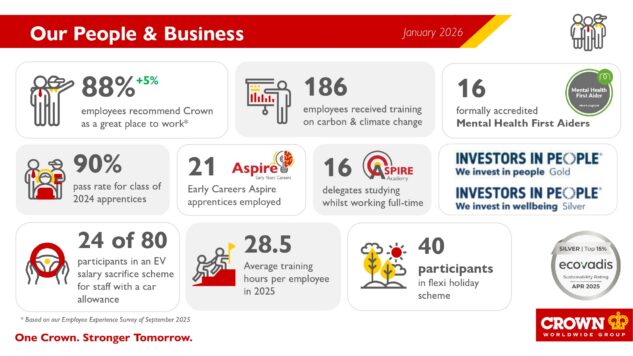 In early 2025, Crown UKI launched a social impact strategy designed to support our communities in a way that is informed, impactful and quantifiable. Our aim is to contribute to economic development and quality of life in the areas in which we operate whilst driving progress towards our three-pillar strategy, living our values and contributing towards the global UN Sustainable Development Goals.
